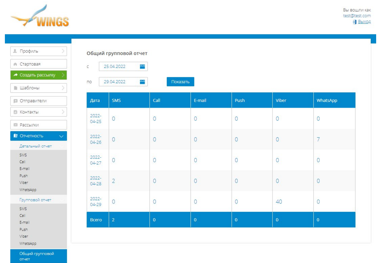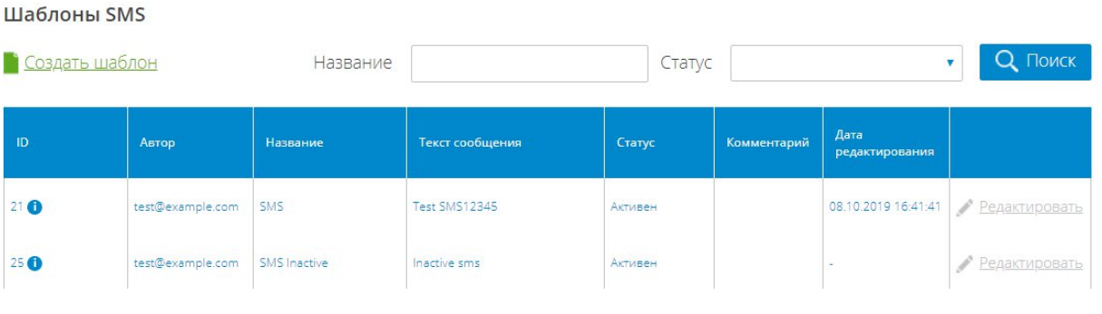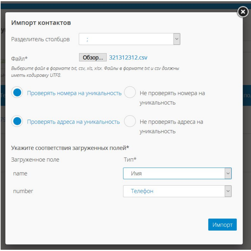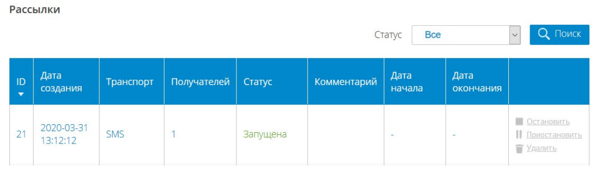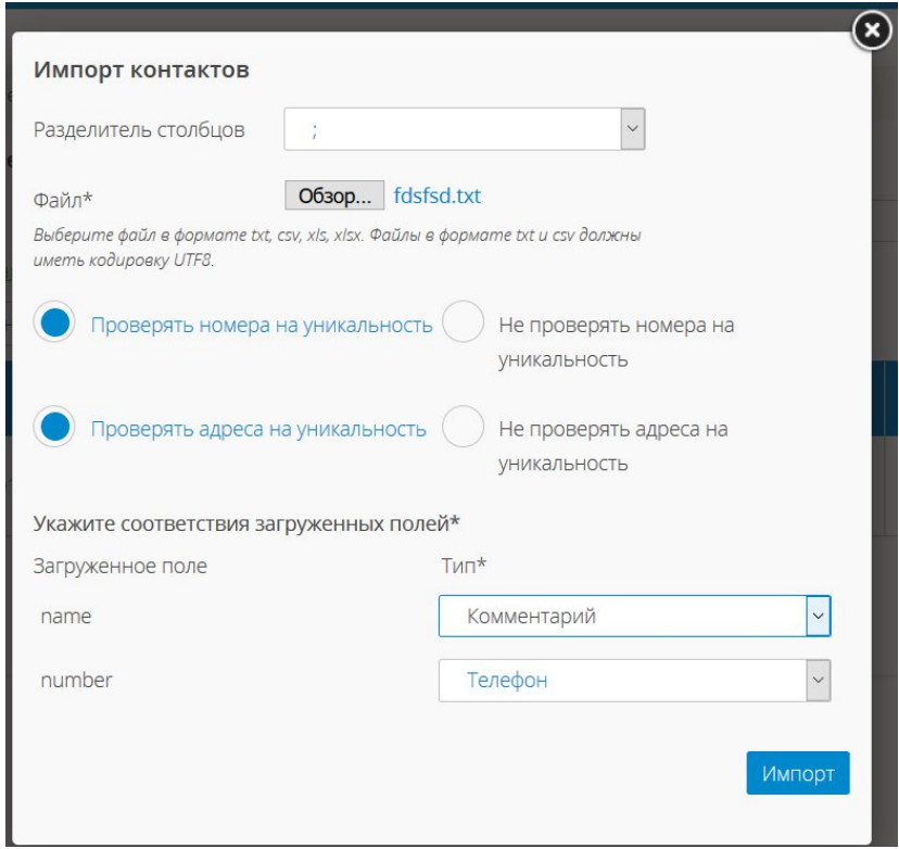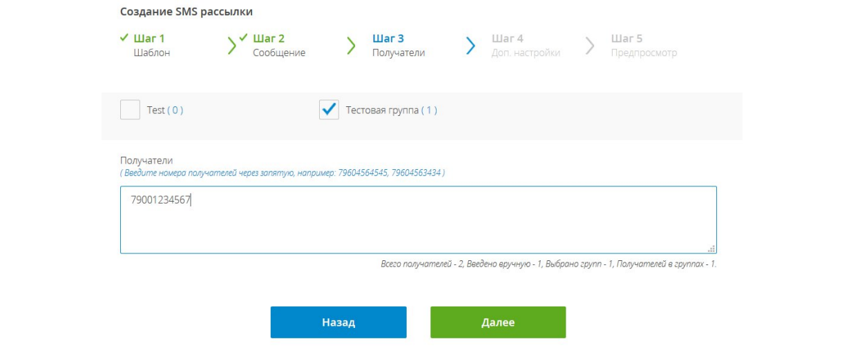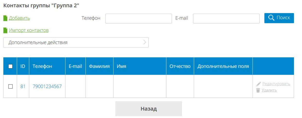 Поделиться через Поделиться через... Twitter Facebook Telegram WhatsApp TeamsОтправить по эл.почтеПечать × Содержание Руководство пользователя личного кабинета. Авторизация Добавление группы Добавление группы Редактирование группы Контакты группы Перемещение и копирование получателей Экспорт получателей Черные списки Добавление черного списка Редактирование черного списка Контакты черного списка Добавление контакта вручную Импорта контактов Перемещение и копирование контактов Экспорт контактов Создание шаблонов Создание шаблона SMS Создание шаблона Call Создание рассылок Создание рассылки SMS Рассылки Отмена отправки рассылки Остановка отправки рассылки Приостановка отправки рассылки Возобновление отправки рассылки Работа со статистикой Детальная статистика Детальная статистика Call Групповая статистика Общий групповой отчет Выгрузка данных в файл. Отчеты по экспорту Профиль Личные данные Отправители Добавление адреса отправителя Руководство пользователя личного кабинета. Авторизация На данной странице нужно ввести учетные данные для входа в систему. После нескольких неудачных попыток, помимо учетных данных, необходимо будет ввести значение поля «captcha». Добавление группы Для создания группы получателей нужно перейти на страницу Контакты → Группы контактов. На данной странице отображены все ранее созданные группы получателей, которые можно отредактировать или удалить по соответствующим кнопкам. По кнопке «Добавить» можно создать новую группу получателей. Если нажать на название группы, то откроется страница со списком получателей, содержащихся в данной группе. Добавление группы При добавлении новой группы необходимо указать ее название и комментарий к данной группе. Комментарий указывать необязательно. После создания группы она отобразится в общем списке. Редактирование группы При редактировании группы можно изменить ее название или комментарий. Контакты группы При перемещении в группу можно увидеть список всех получателей, содержащихся в данной группе. В группе возможны следующие действия: добавление получателя вручную, импорт получателей из файла, перемещение получателей в другую группу, копирование получателей в другую группу, экспорт получателей в файл. Добавление получателя вручную По кнопке Добавить можно вручную добавить контакт в группу получателей. Телефон – номер телефона получателя; E-mail – адрес электронной почты получателя; Имя – имя получателя; Фамилия – фамилия получателя; Отчество – отчество получателя; Дополнительные поля 1-6 – поля для дополнительной информации. Поле “Телефон” или “E-mail” обязательно для заполнения. Импорт получателей По кнопке Импорт контактов можно импортировать контакты из текстового файла. Разделитель столбцов – символ, которым разделены значения в файле; Файл – текстовый файл; Проверять номера на уникальность – при установке флага в данное положение импортируемые контакты будут проверяться на уникальность номера телефона, импортируется только первый, остальные будут проигнорированы; Проверять адреса на уникальность – при установке флага в данное положение импортируемые контакты будут проверяться на уникальность адресов электронной почты, импортируется только первый, остальные будут проигнорированы; Соответствие полей – при выборе файла и установке пра
